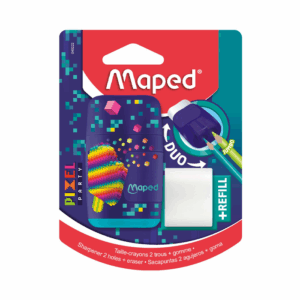 Découvrez le duo gagnant dans la trousse des élèves de collège ! Un outil 2-en-1 avec un taille-crayons d’un côté et une gomme de l’autre. Super pratique pour gagner de la place dans la trousse.
