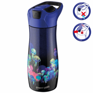La gourde Deepsea Paradise est simple d’utilisation. Son système automatique permet une ouverture à une seule main. Il suffit d’appuyer sur le bouton de verrouillage pour faire sortir la paille. La gourde Deepsea Paradise est étanche : pas de risque de fuite dans le sac de cours des élèves.