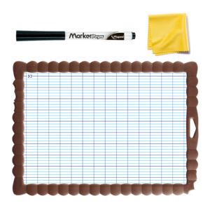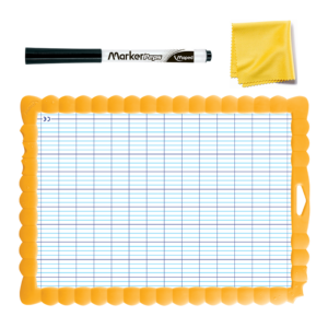 Recto-verso: un côté uni pour le dessin et les activités, un côté carré pour l’écriture